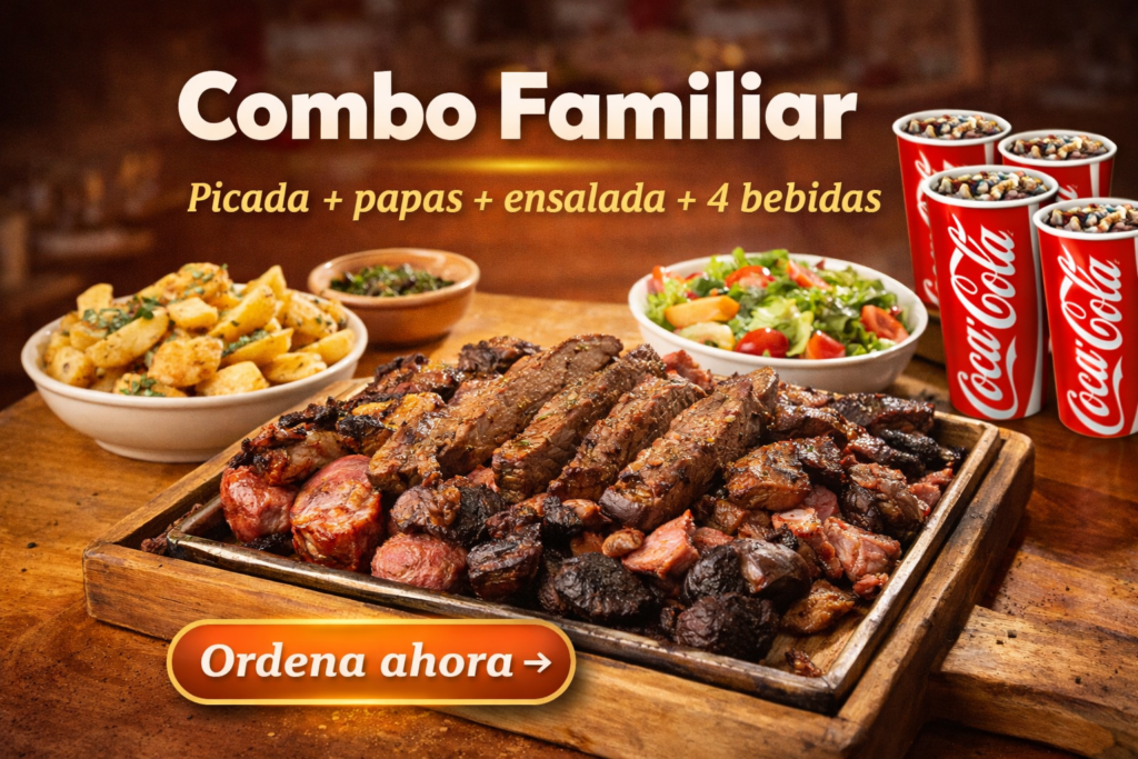 Ganso (res), chorizo, morcilla y papas (normales o criollas). +Extras de pechuga o queso. (Rinde full)